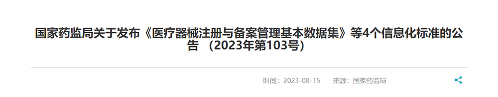 國家藥監(jiān)局關于發(fā)布《醫(yī)療器械注冊與備案管理基本數(shù)據(jù)集》等4個信息化標準的公告..